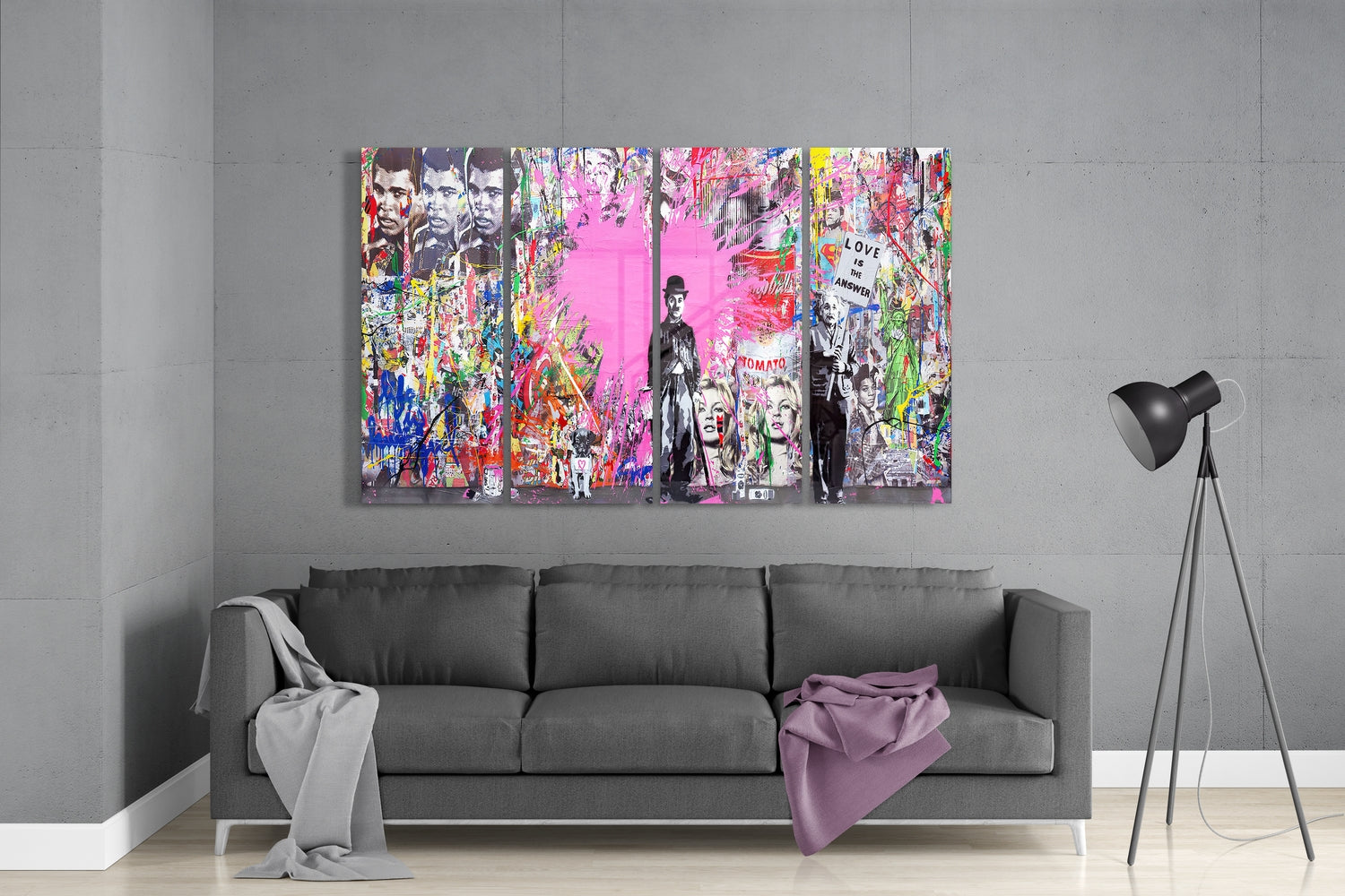 Charlie, Einstein and Banksy 4 Pieces Mega Glass Wall Art (150x92 cm)