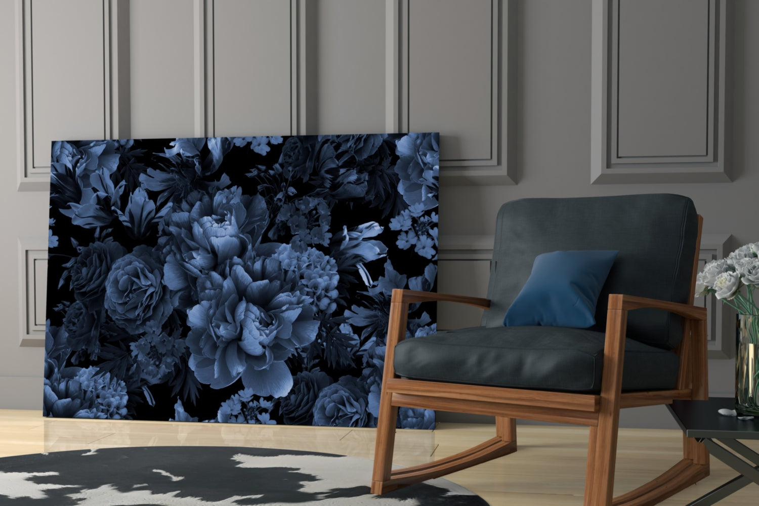 Elegant Midnight Bloom Glass Wall Art