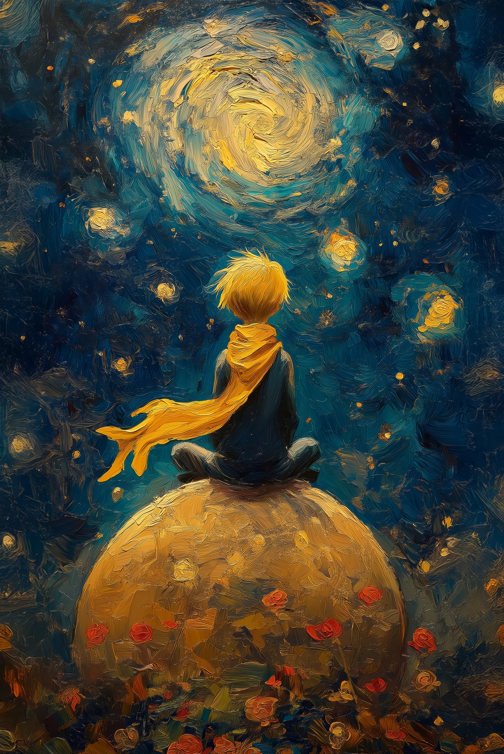Dépassez les impressions plates. Starlit Wanderer est conçu pour être vu et ressenti—une scène nocturne intime avec une texture en relief réelle, finie par des accents de laque high-gloss qui scintillent lorsque la lumière bouge.
