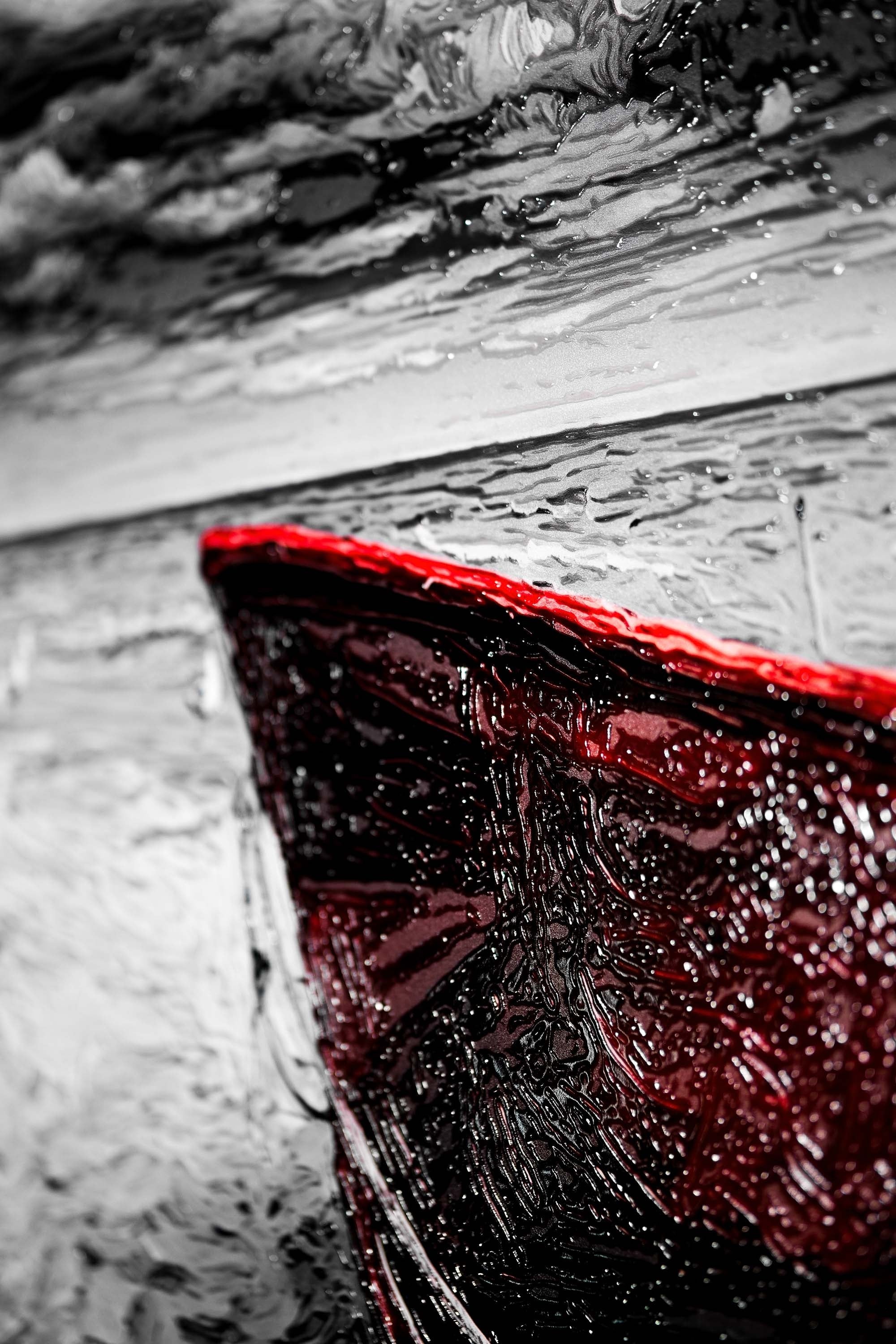 - Liquid Color Pop: The high-gloss finish makes the red hull "pop" with an intense, liquid-like saturation against the matte, monochromatic background.