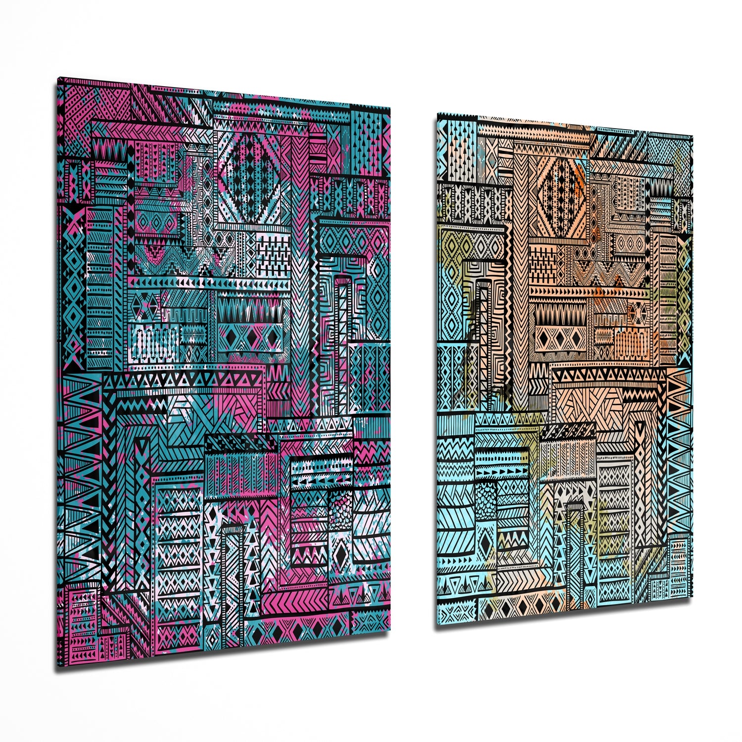Ethnische Patherns 2 Stück kombinieren Glasbild