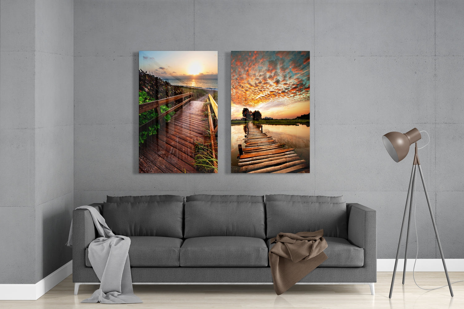 Sonnenuntergänge 2 Stück kombinieren Glasbild
