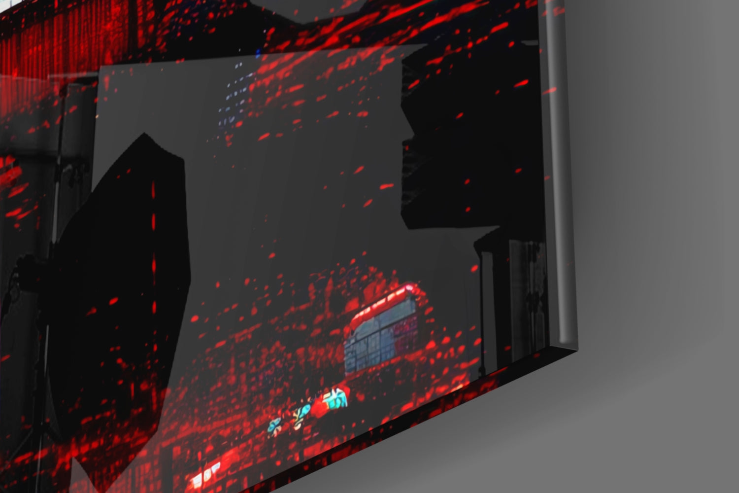 This product is not a digital screen but a modern artwork produced with high-resolution printing. Therefore, it does not feature motion or sound, but permanently showcases the vivid colors of the design and the elegance of glass in your space.