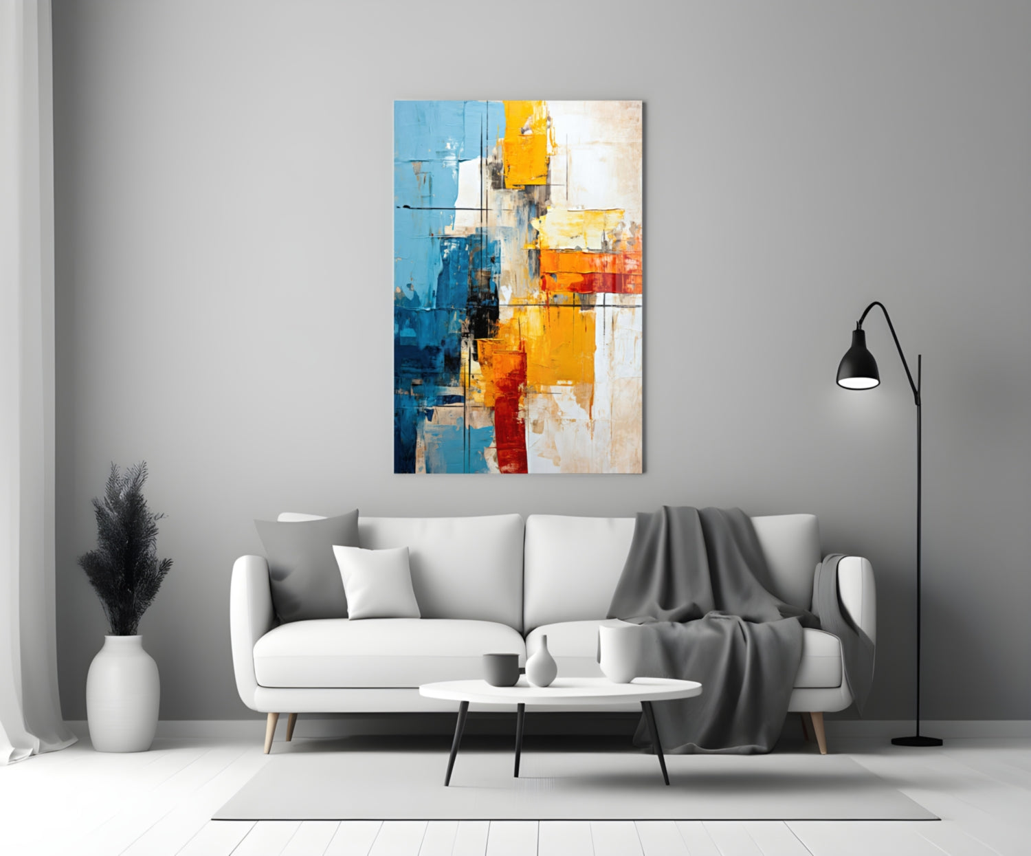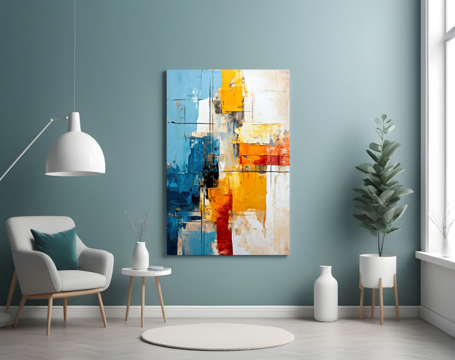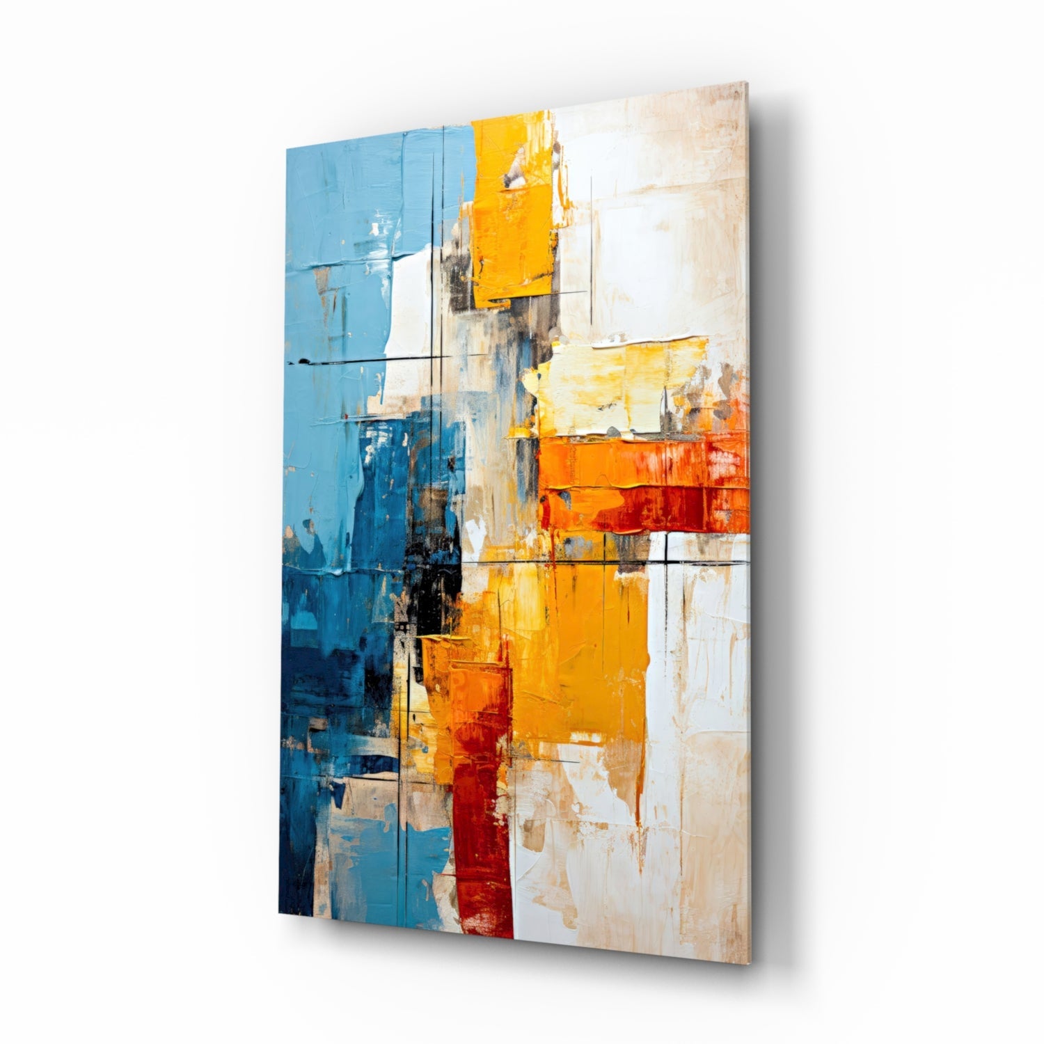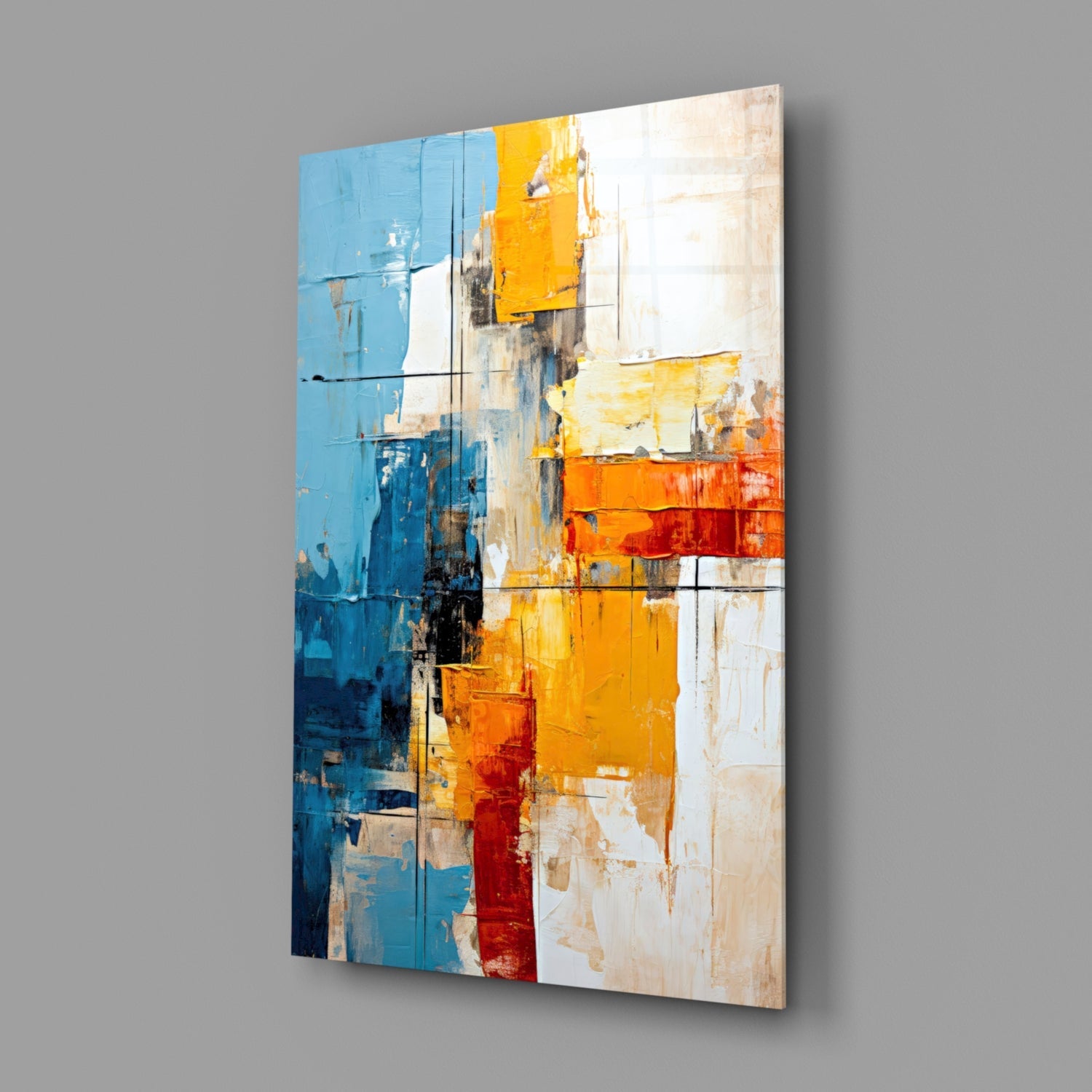 Elevate your space with our premium tempered glass art featuring bold color blocks and modern design.