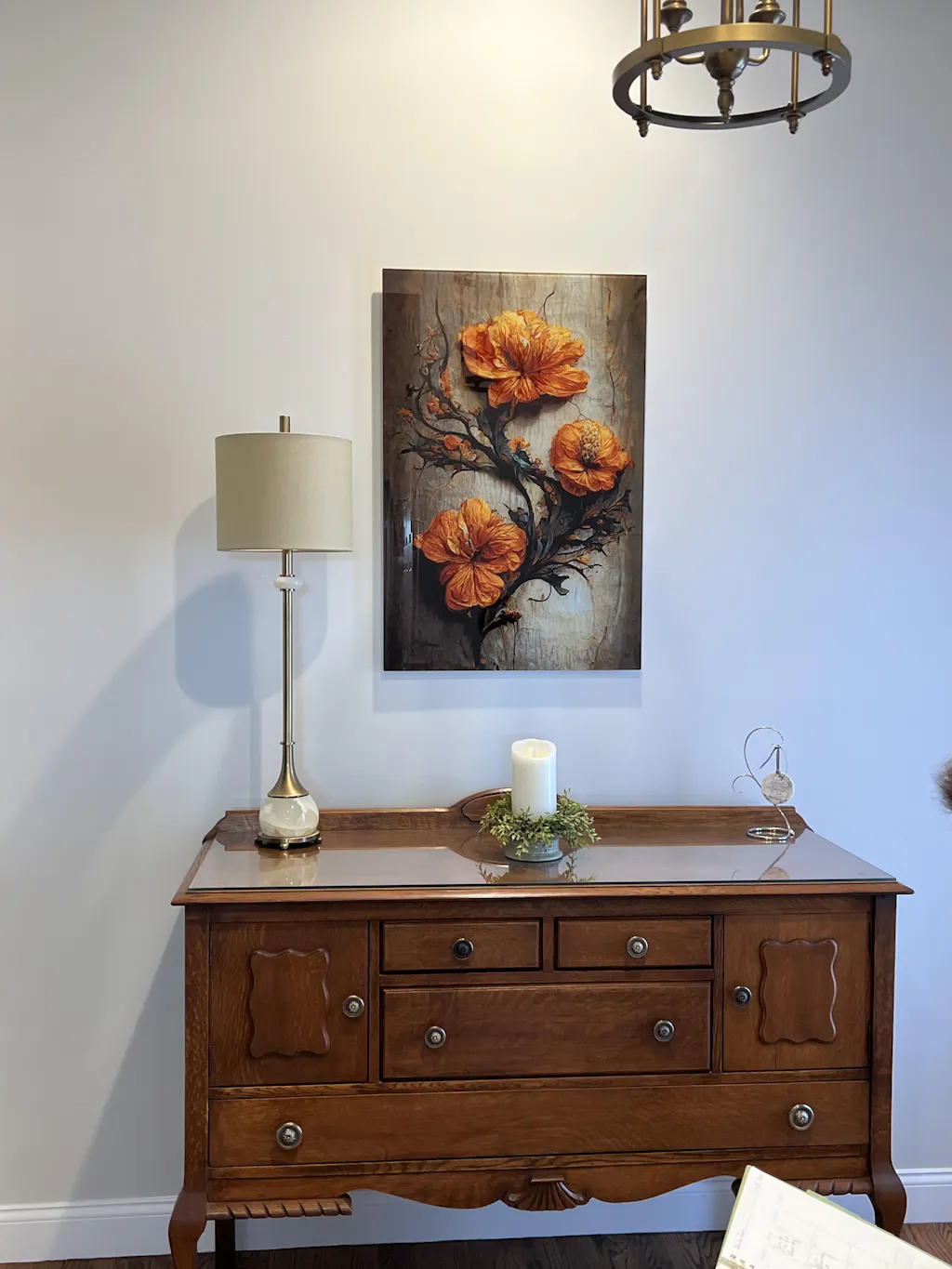 This is absolutely beautiful and everything I expected! It was very well packed and arrived a day early. The few imperfections that appear on the art (the left corner and pink tones) are do to glare of my camera. The piece is absolutely perfect!