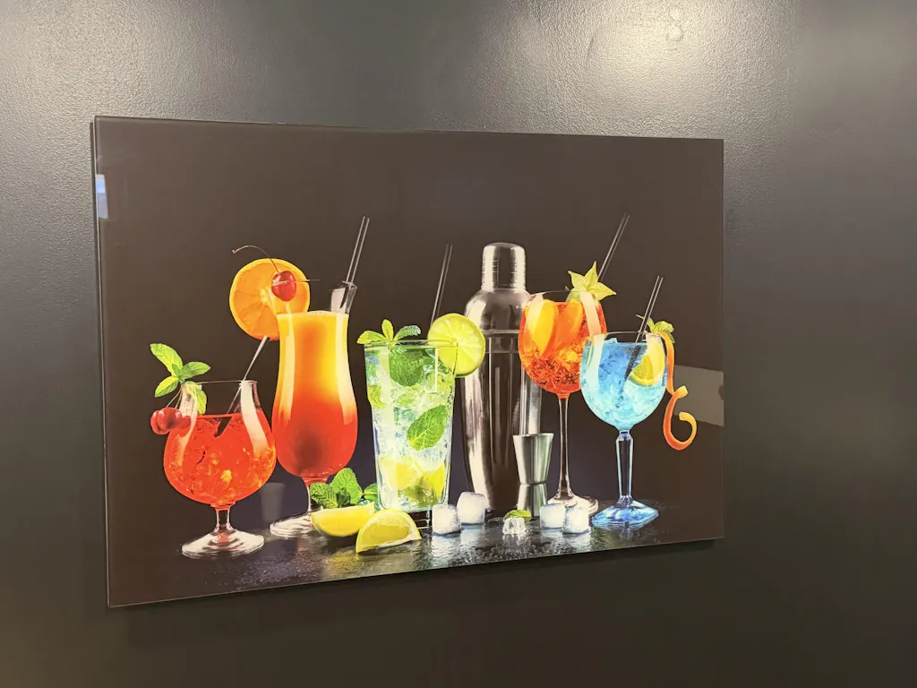 Magnifique tableau ben verre. L'arbre reflète dans l'eau ce qui donne au tableau une belle profondeur. Les couleurs y sont magnifiques. Et comme toujours, des tableaux de qualité. A côté du lion également acheté dans cette enseigne.