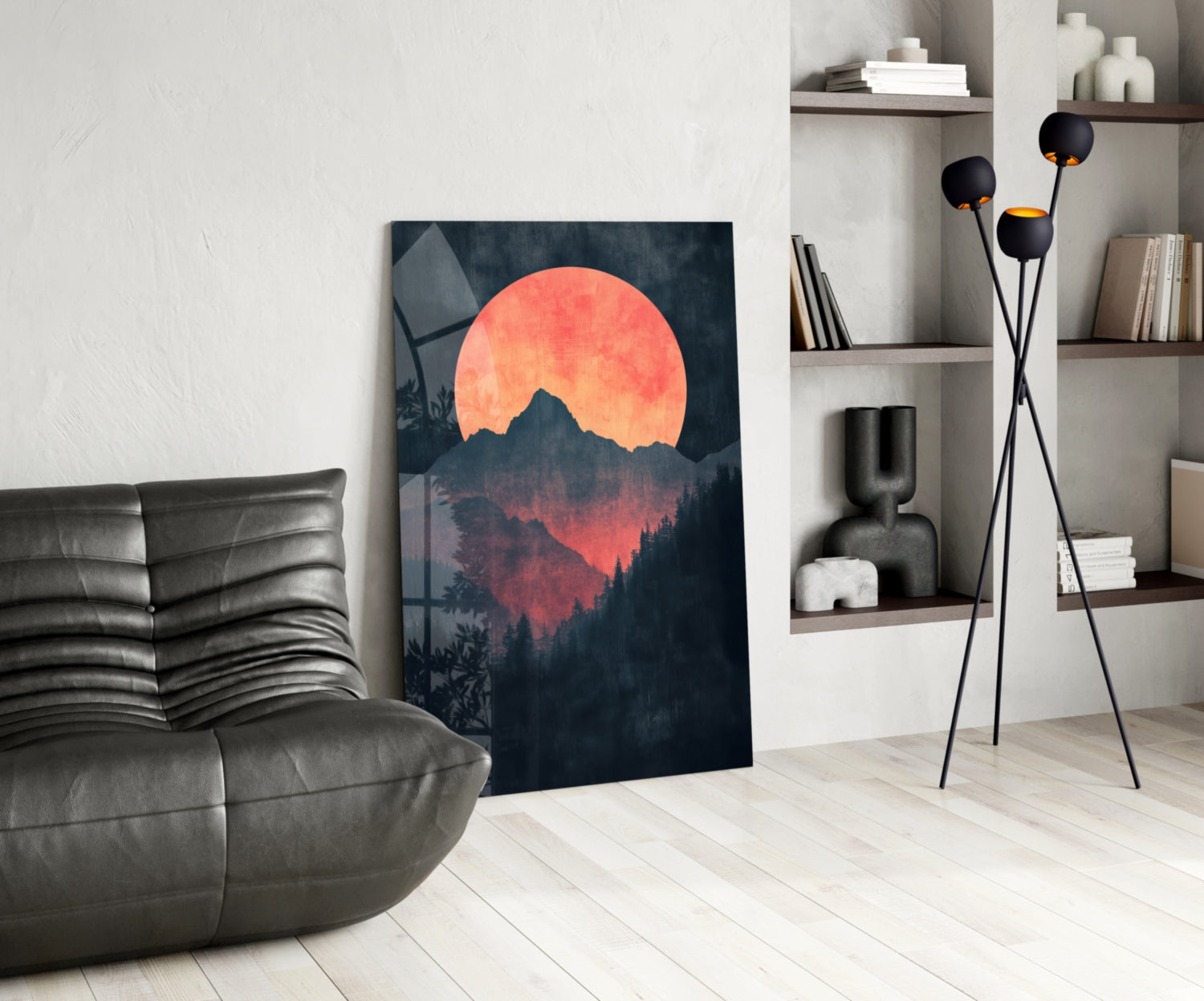 Red Moon Rising Glass Wall Art || Designer Collection by Insigne