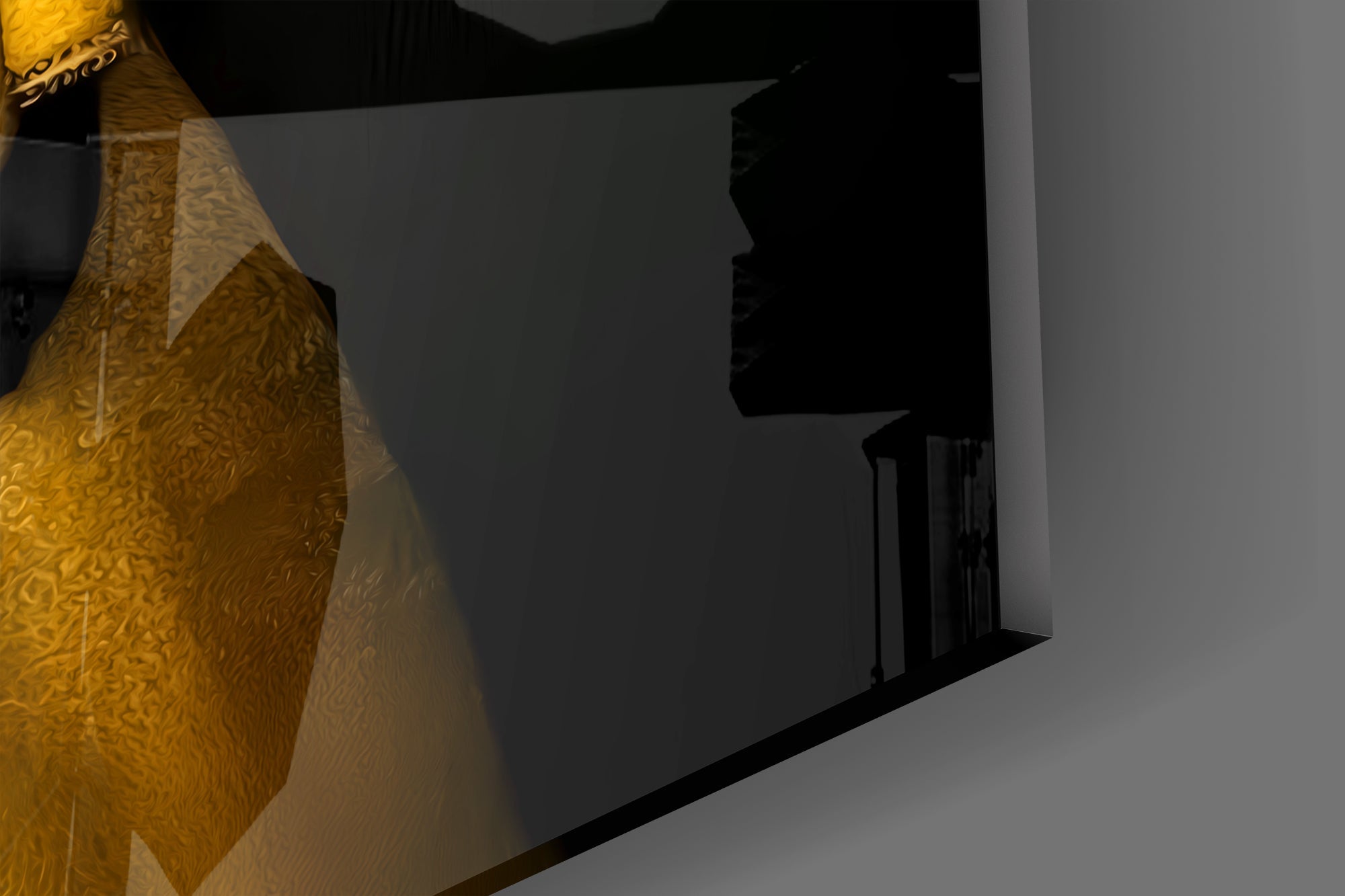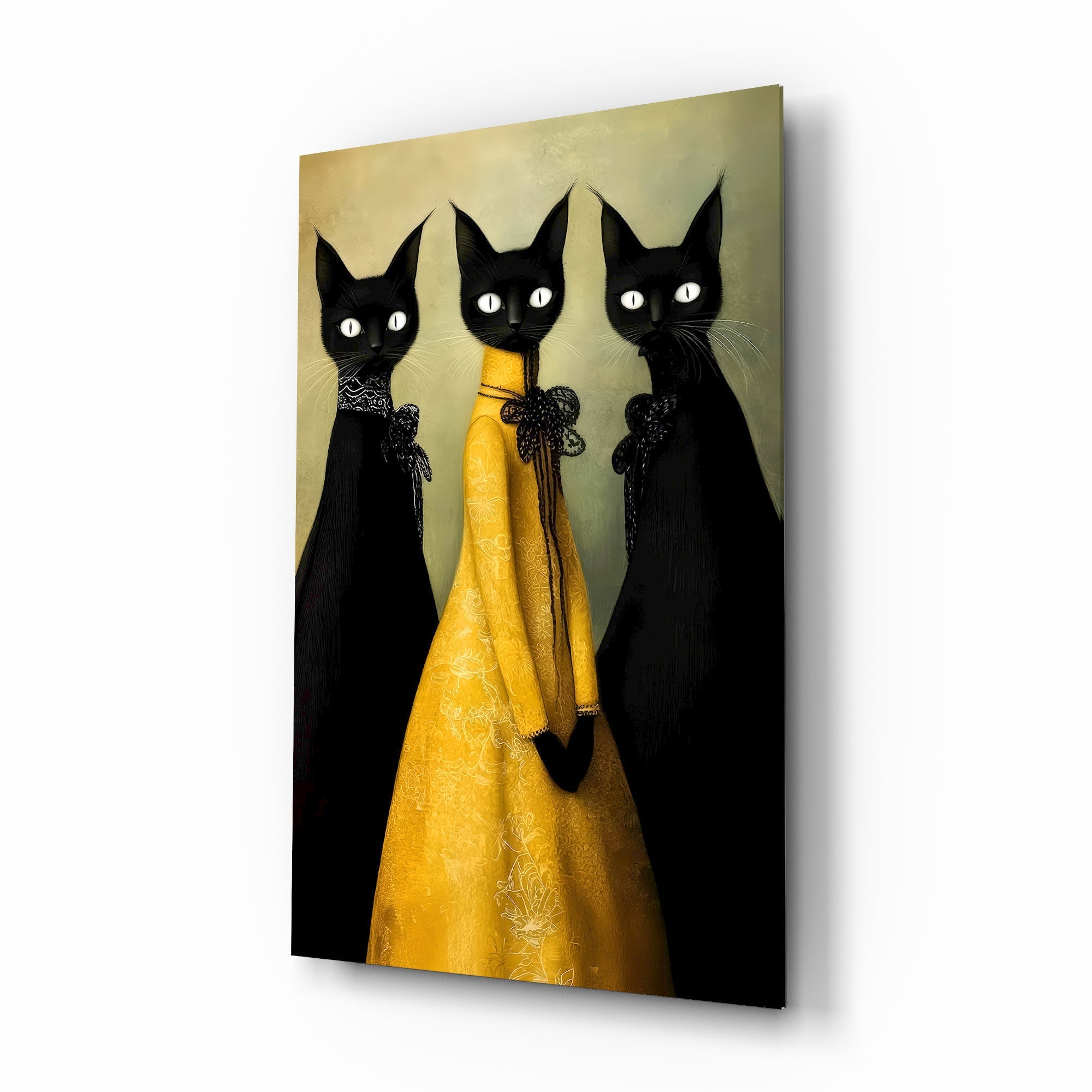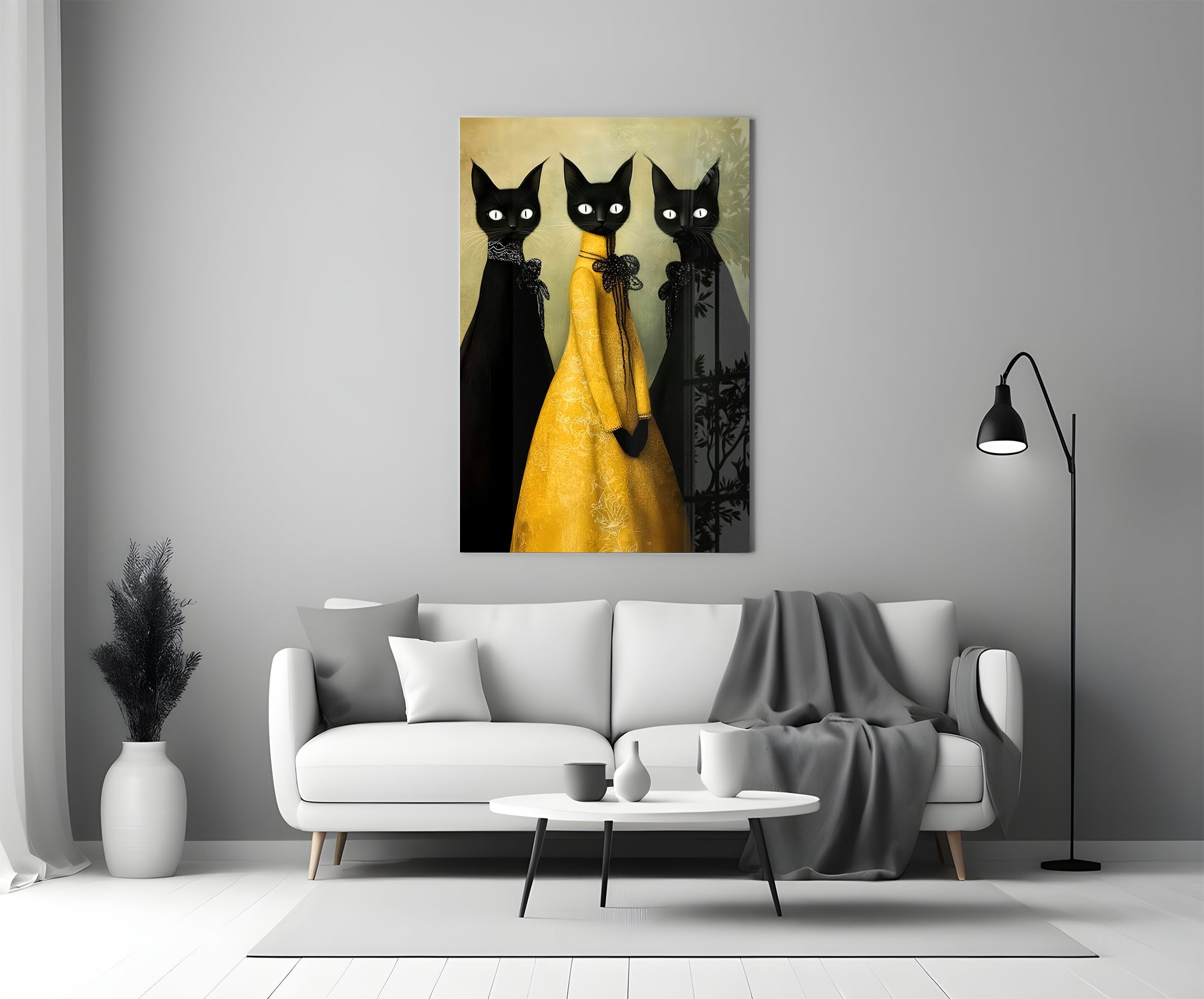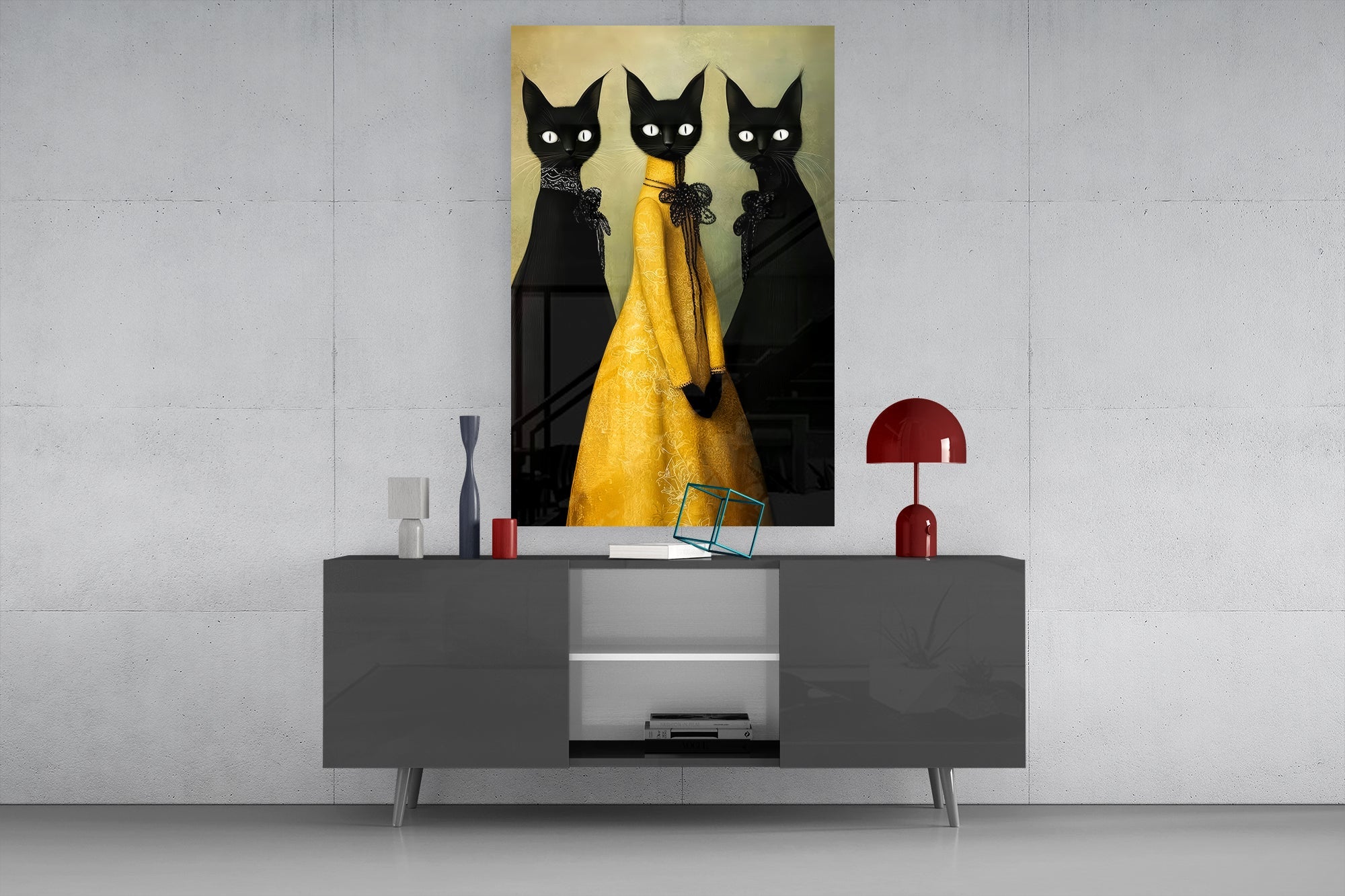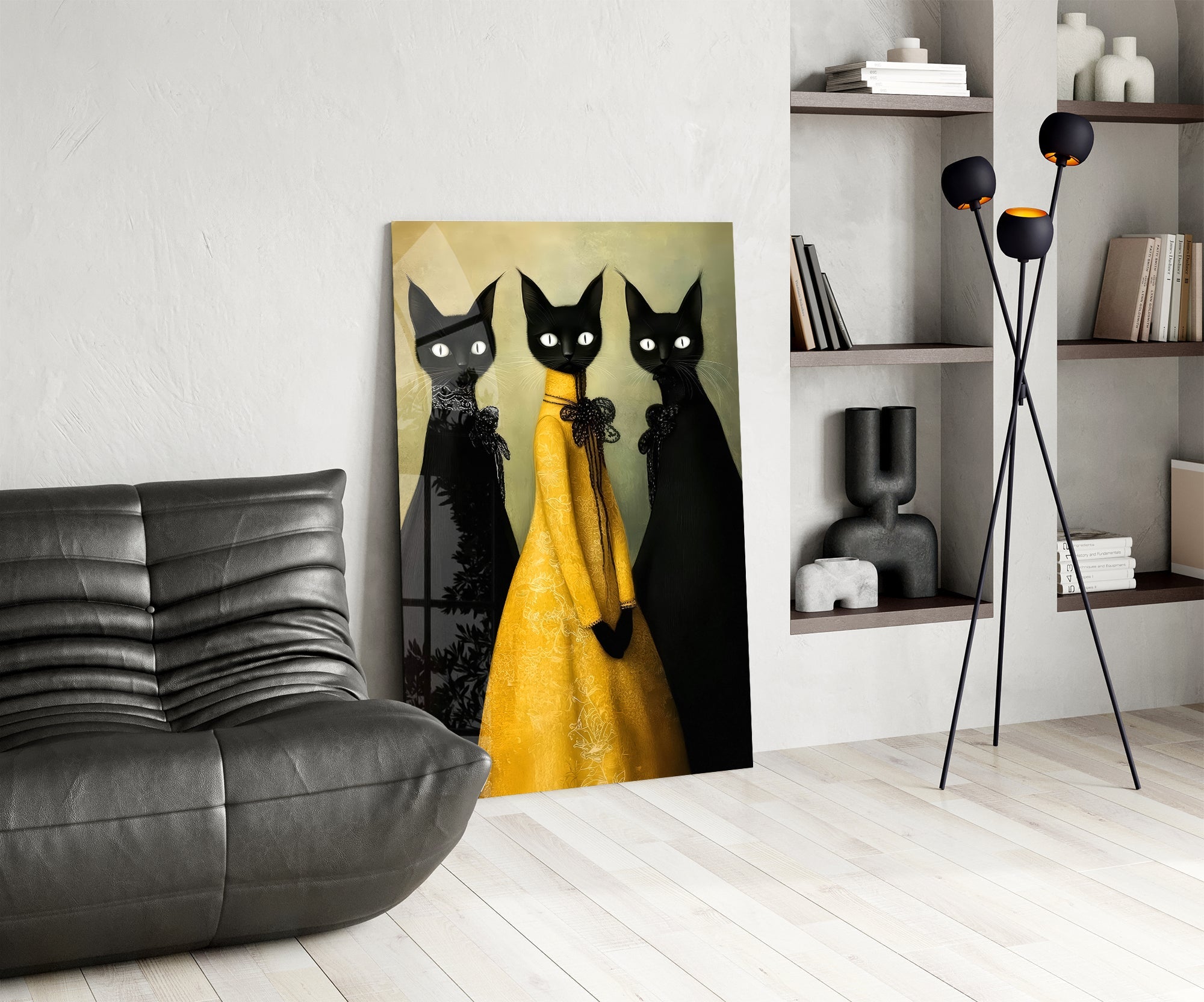 Elevate your space with this stunning, premium tempered glass wall art featuring elegant cats in a gold dress.