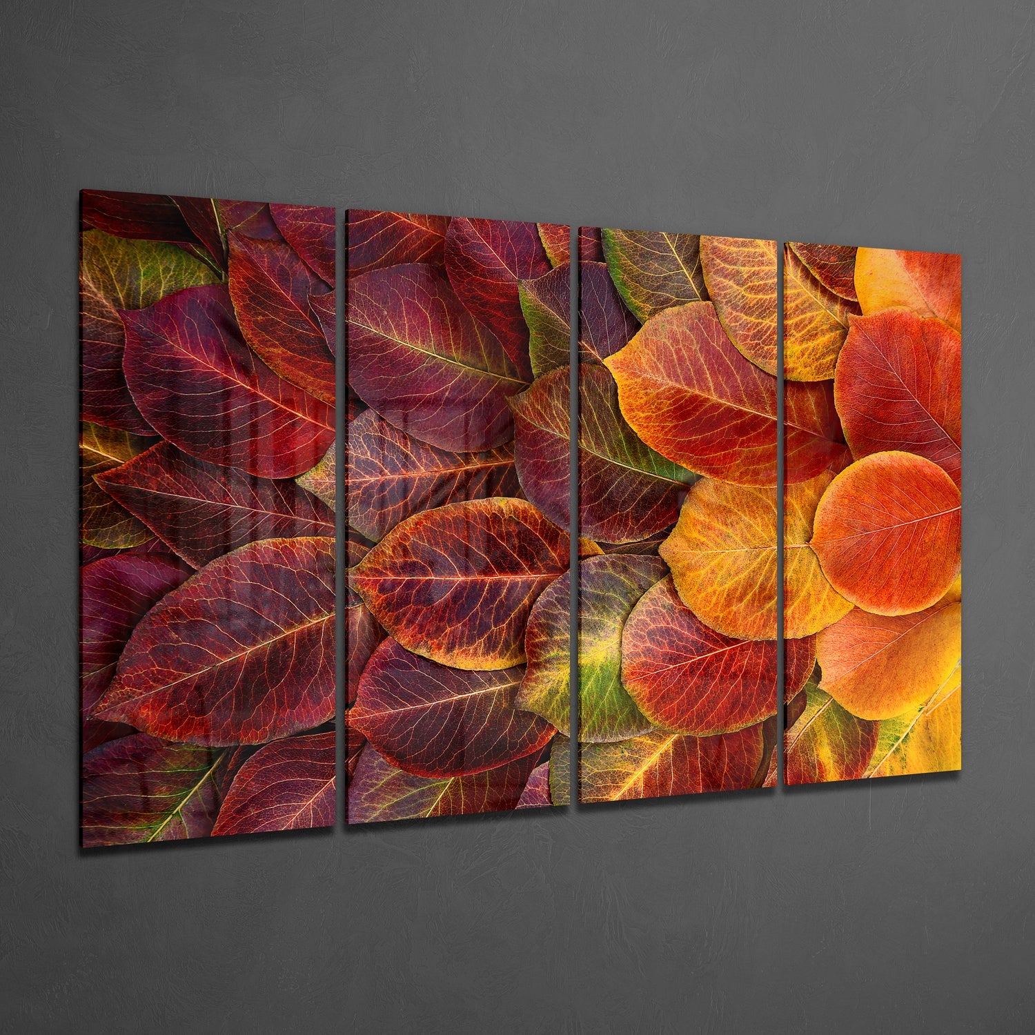 Foglie autunnali Arte da parete in vetro Mega da 4 pezzi (150x92 cm)