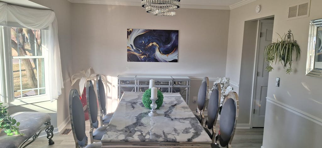 I purchased the tri panel blue textured glass piece. It arrived very quickly, everything in tact, no dents or breaks. Just had it hung (pic attached) and I love it. I had a long wall and needed a piece big enough for it. This artwork worked perfectly for the space. Thx too bad it won’t let me upload a pic