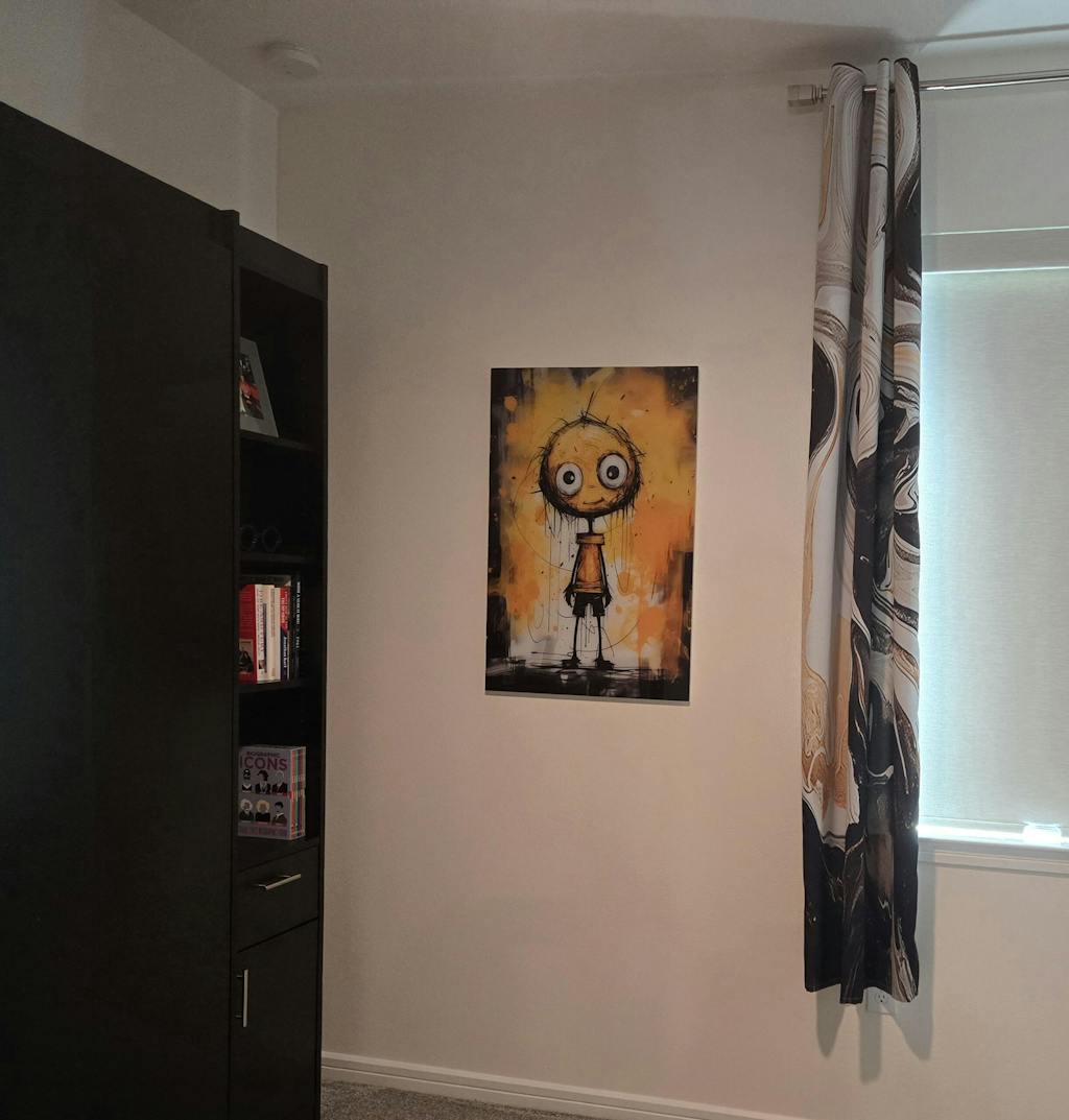 We love the innocence picture. The colors are brilliant and perfect for our 2nd bedroom. Fantastic quality. A great asset to our home. We call the little guy little Willie. A great purchase.Thank you.