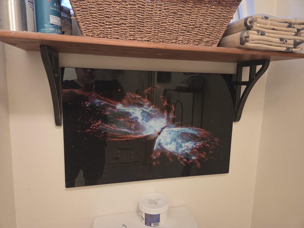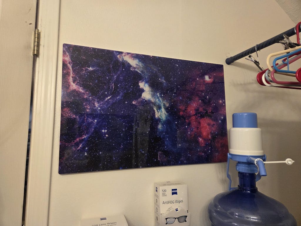 This is absolutely beautiful and everything I expected! It was very well packed and arrived a day early. The few imperfections that appear on the art (the left corner and pink tones) are do to glare of my camera. The piece is absolutely perfect!