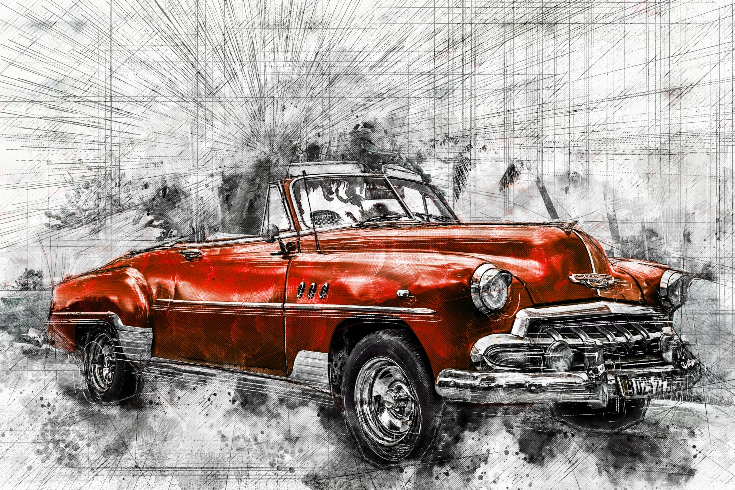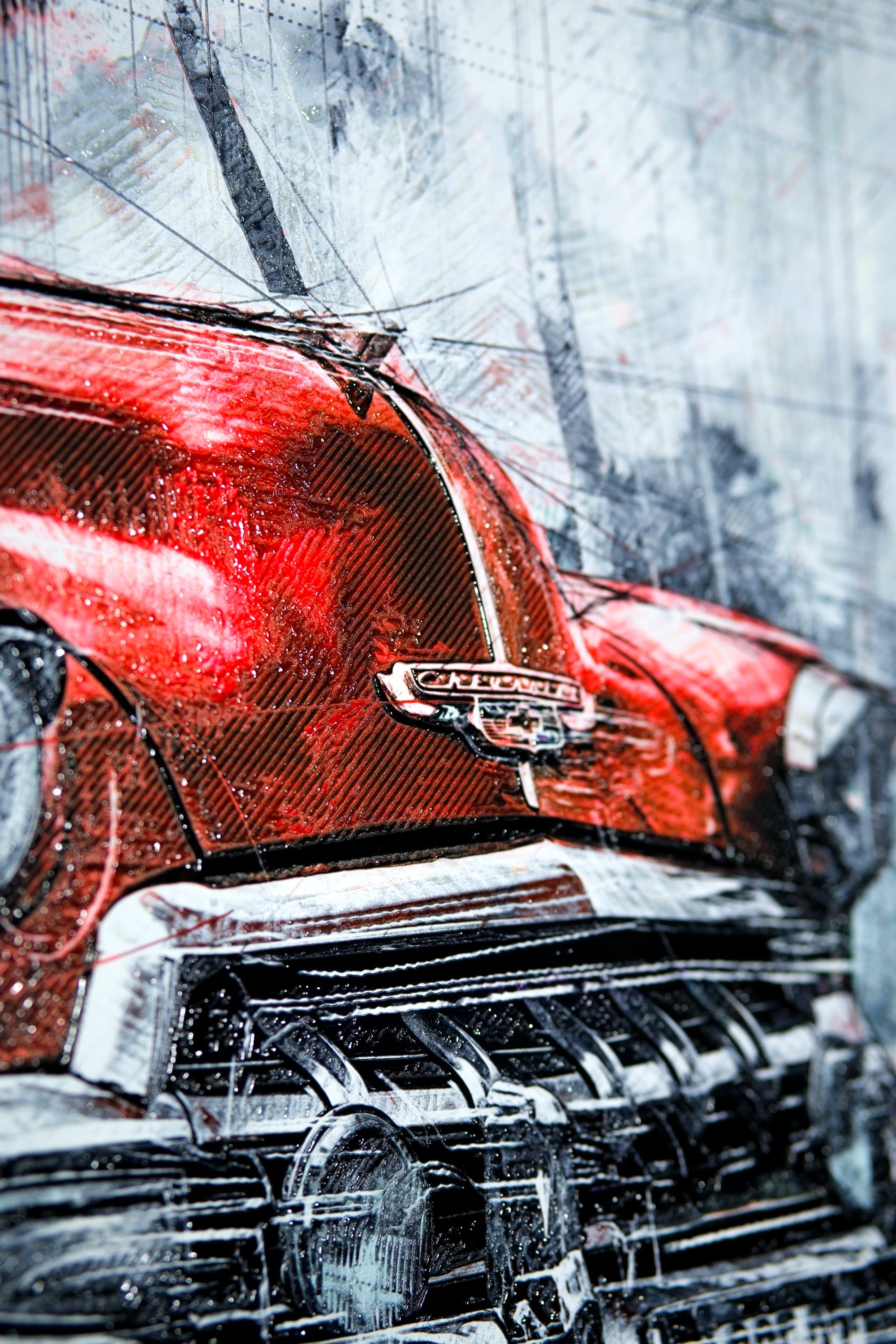 Not just a car print—an icon, rebuilt in texture. Crimson Chrome Classic captures the soul of a vintage convertible in a bold red blaze, surrounded by sketch-line energy and cinematic whites. Finished with tactile 3D embossing and targeted gloss lacquer, it feels like a showroom highlight—only on your wall.