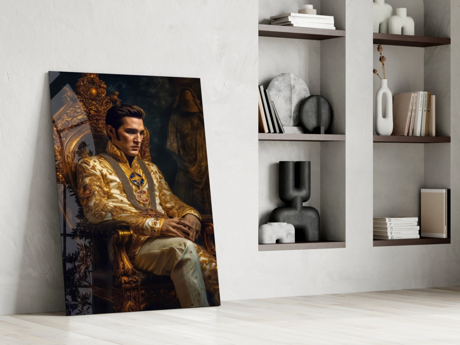 Elvis Presley in the Throne Glass Wall Art || Designer's Collection by Insigne