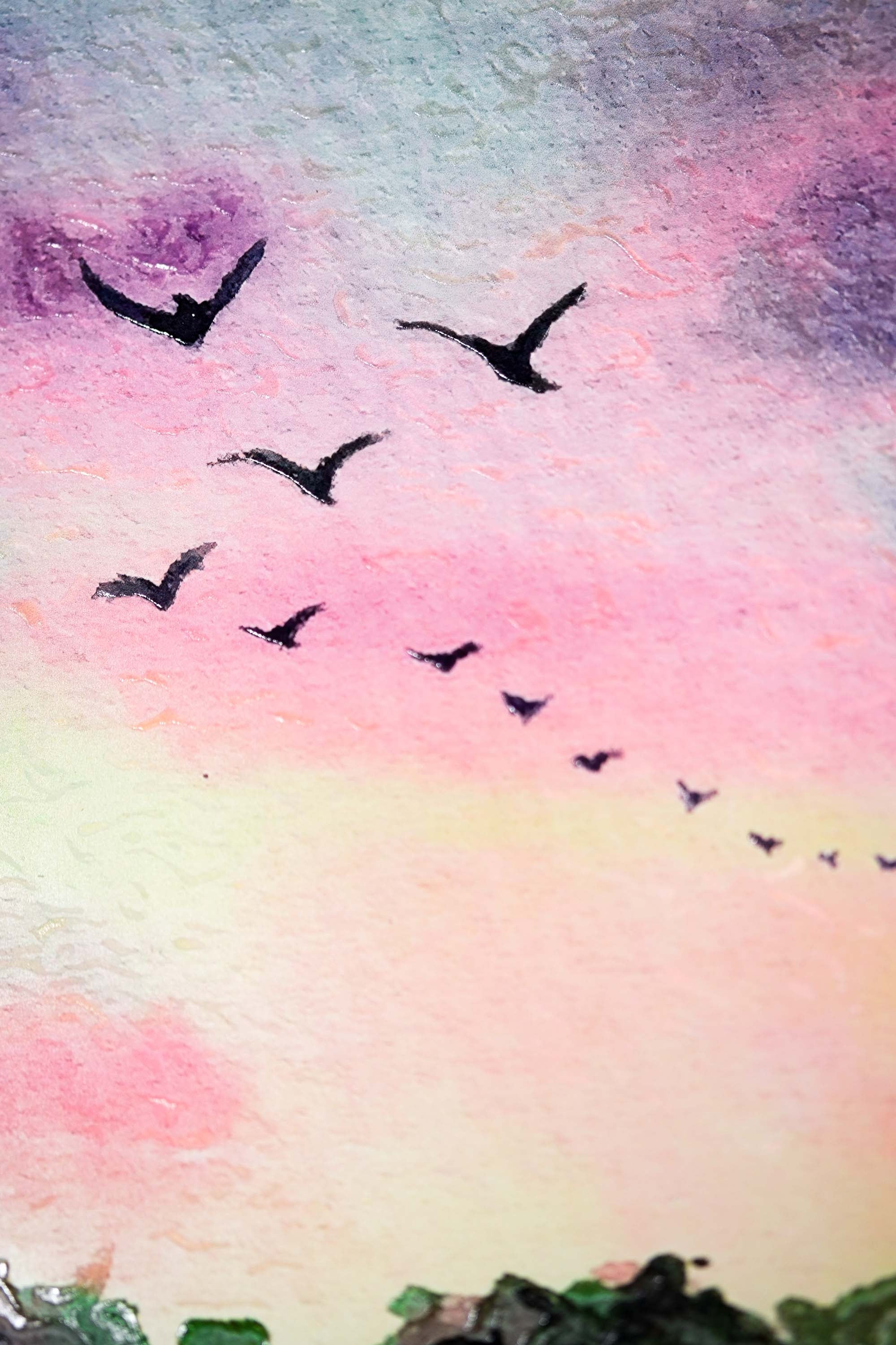- Luminous Sunset: The lacquer adds a glass-like finish to the pink, orange, and yellow hues of the sky, making them glow with intensity.