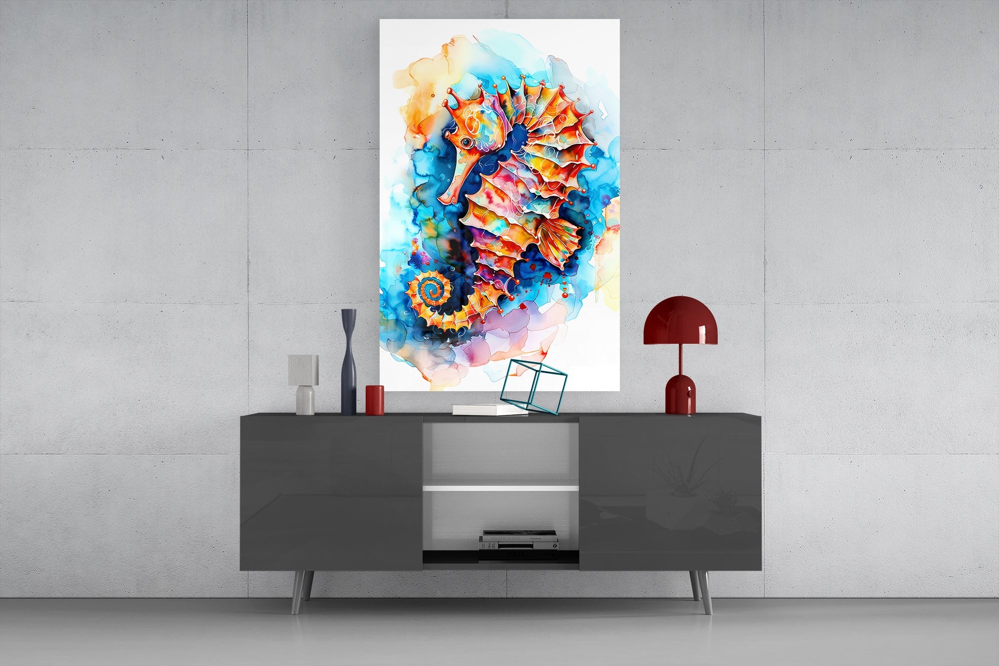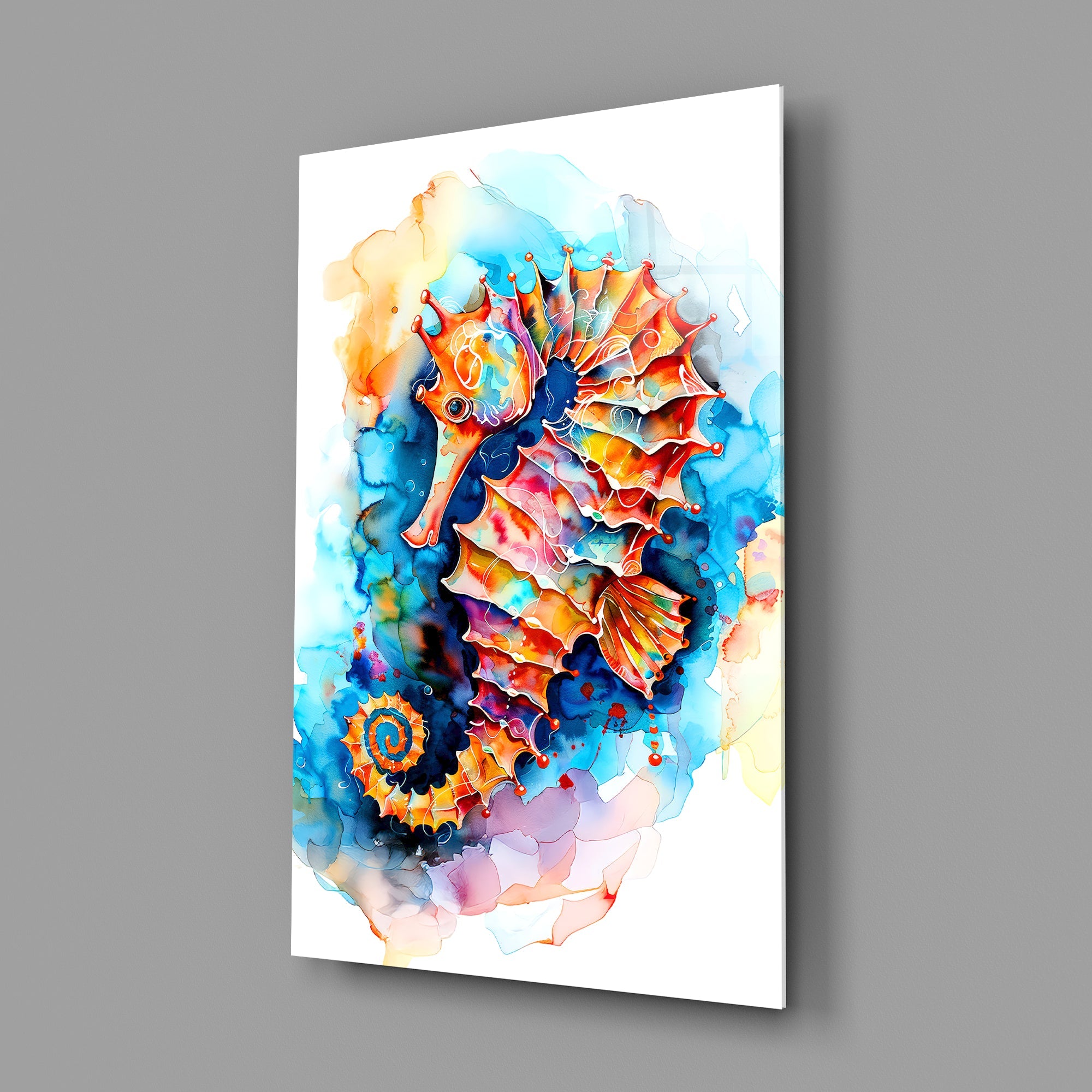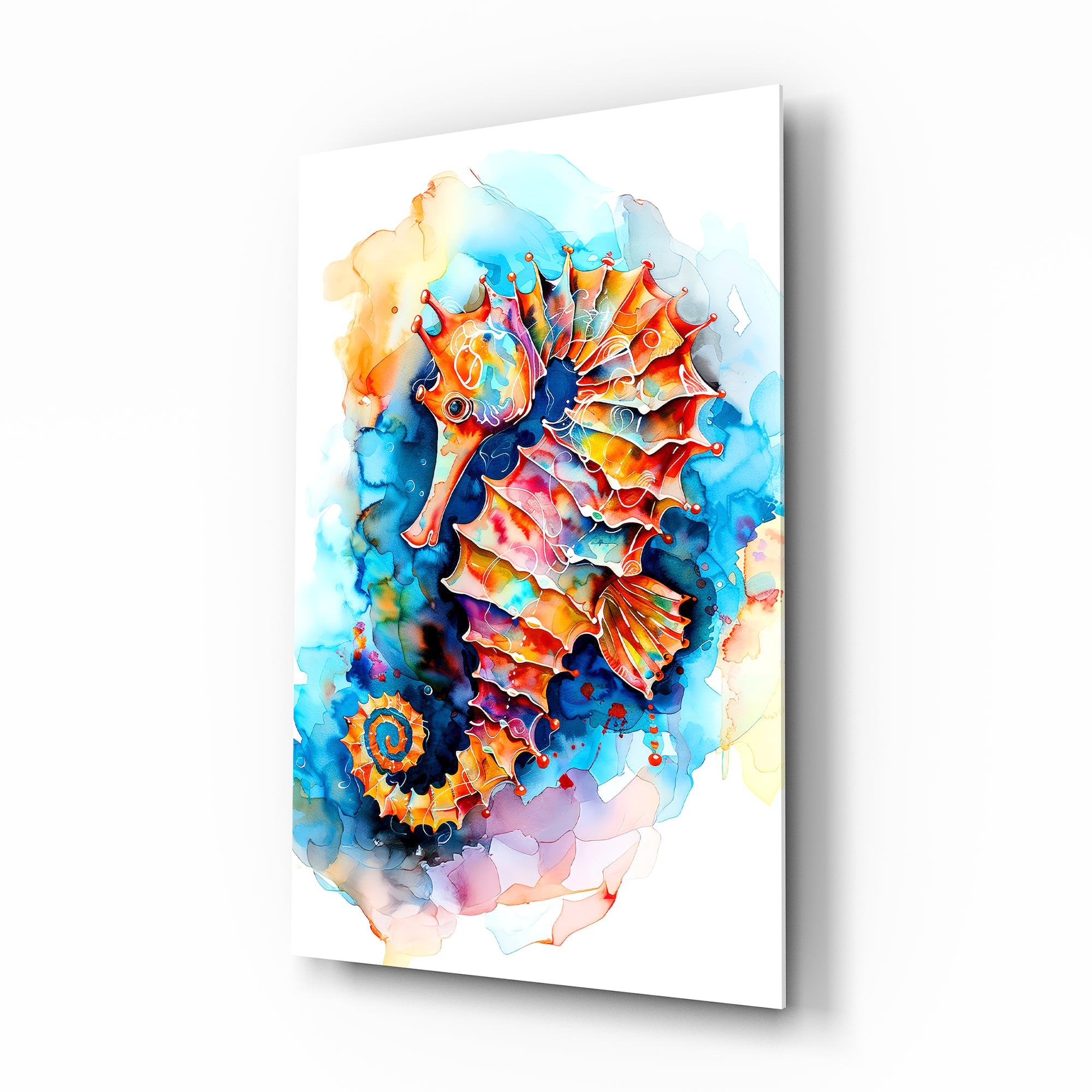 Colorful Seahorse Splash Glass Wall Art Art by Insigne