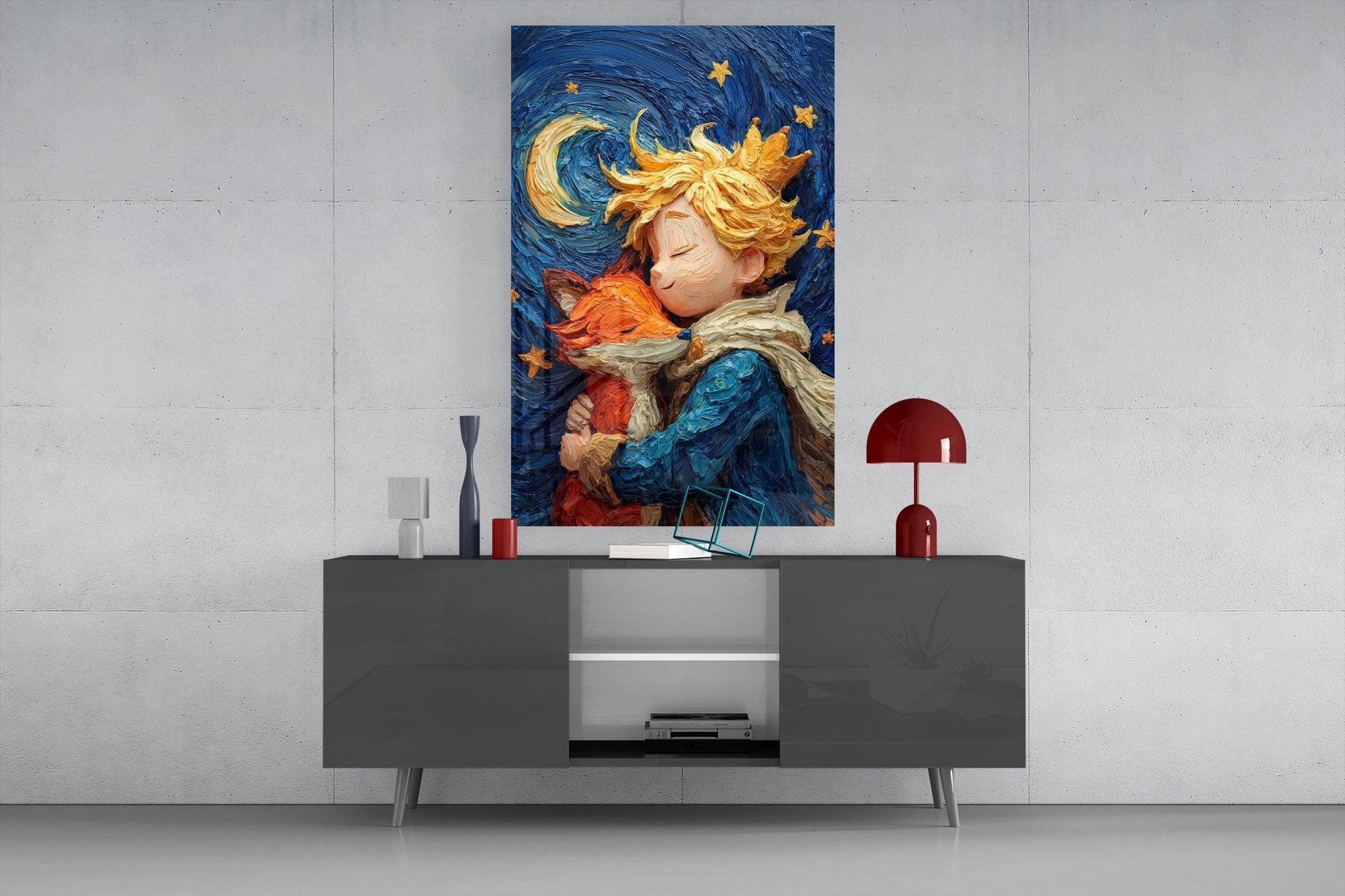 Experience the magic of the Little Prince's celestial journey in this premium tempered glass wall art.