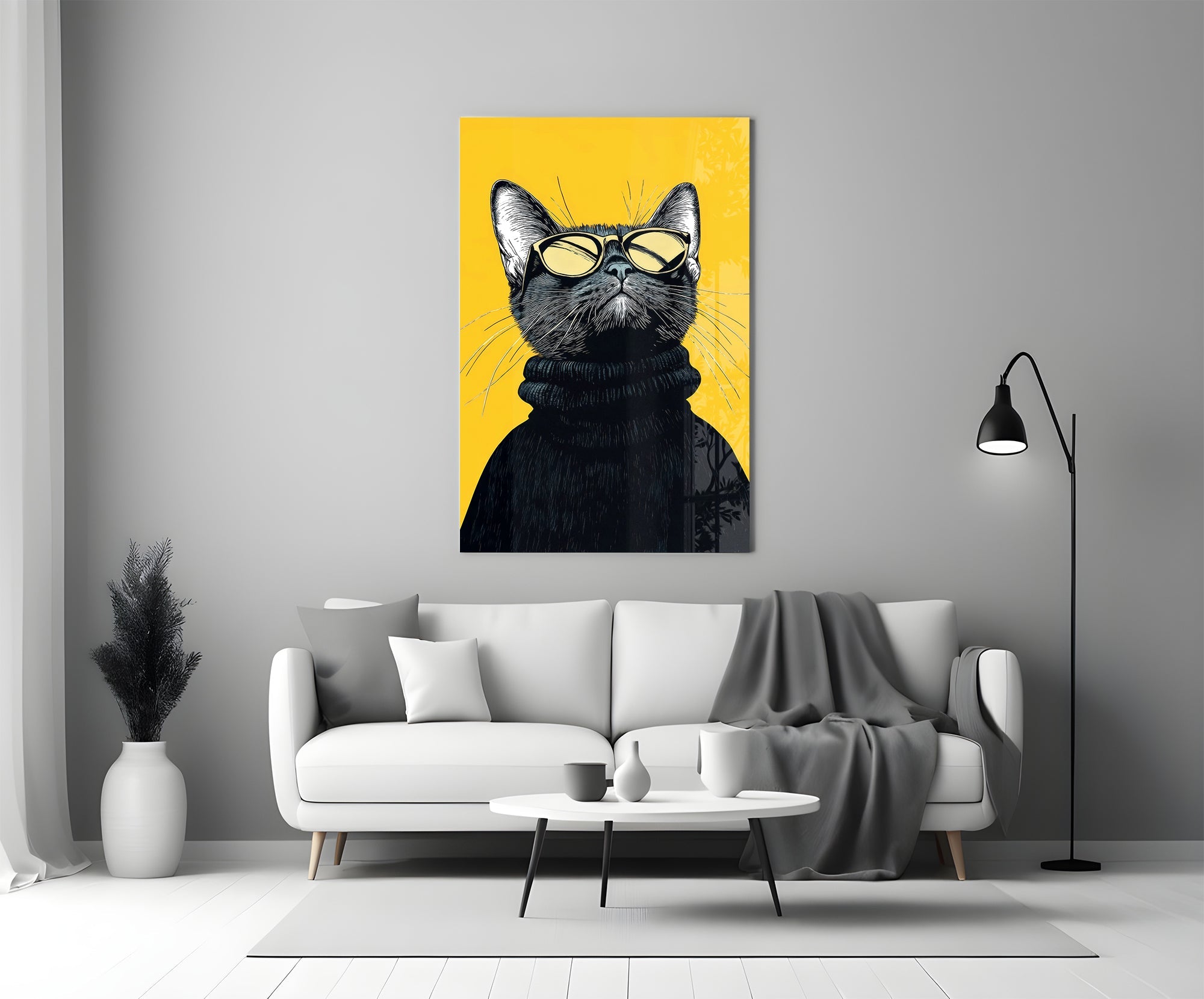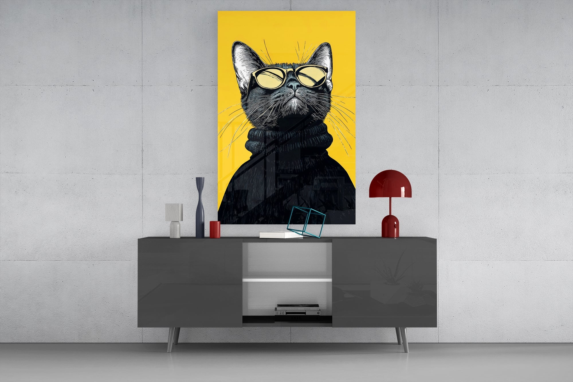 Elevate your space with this stylish, premium tempered glass wall art featuring a cool cat in shades. Perfect for adding a touch of modern flair to any room.
