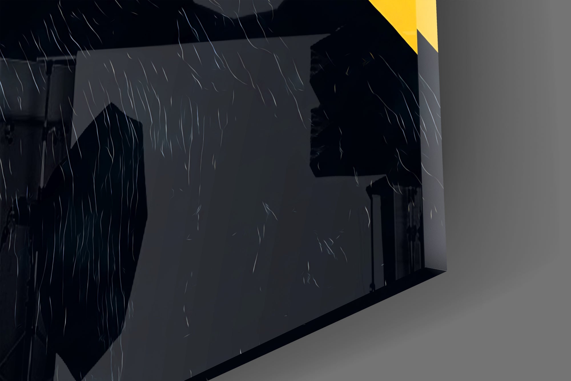 This product is not a digital screen but a modern artwork produced with high-resolution printing. Therefore, it does not feature motion or sound, but permanently showcases the vivid colors of the design and the elegance of glass in your space.
